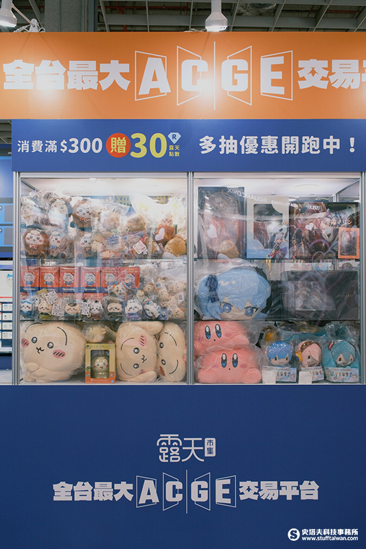 全台最大ACGE交易平台露天市集,連兩年參展台北國際動漫節,今年特別以最高規格集結動畫、漫畫、遊戲與電競四大元素規劃五天展場活動,除攜手「怨念事務所」、「東海模型」、「勳寶玩具鋪」等台灣指標動漫周邊店家,線上線下同步展開動漫節;