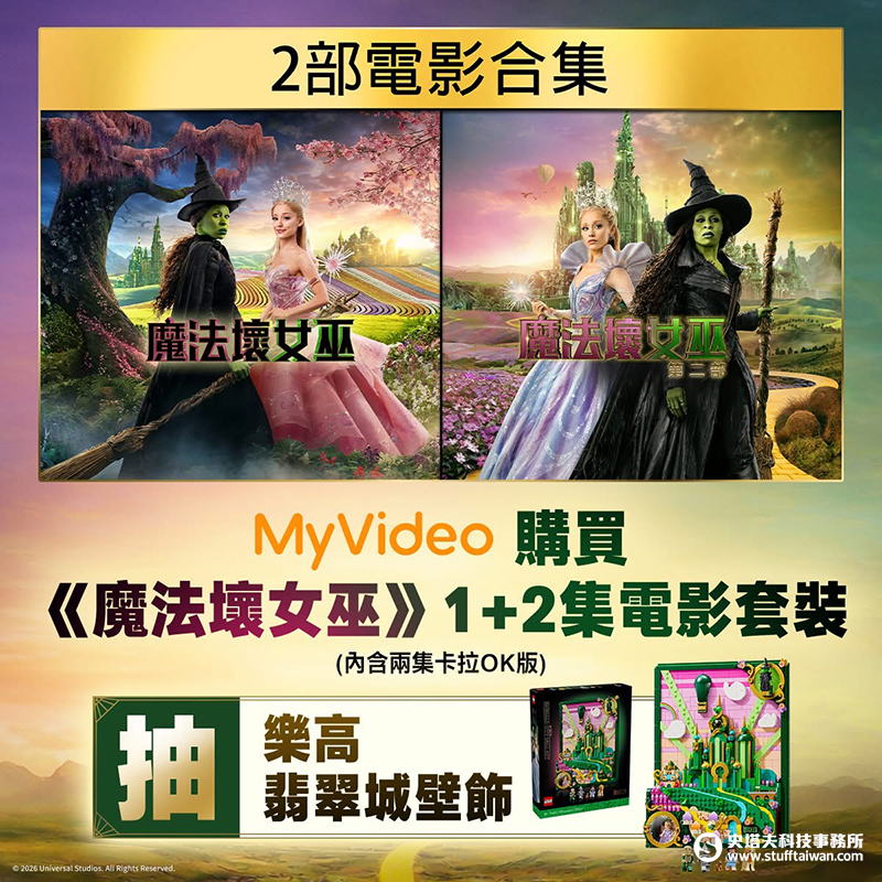 MyVideo加碼推出「看片就抽好禮」,租借或購買《魔法壞女巫》、《魔戒系列》及《DC英雄樂高》等電影或套裝,即有機會將電影聯名樂高帶回家,讓大家春節開心看片收穫滿滿。
