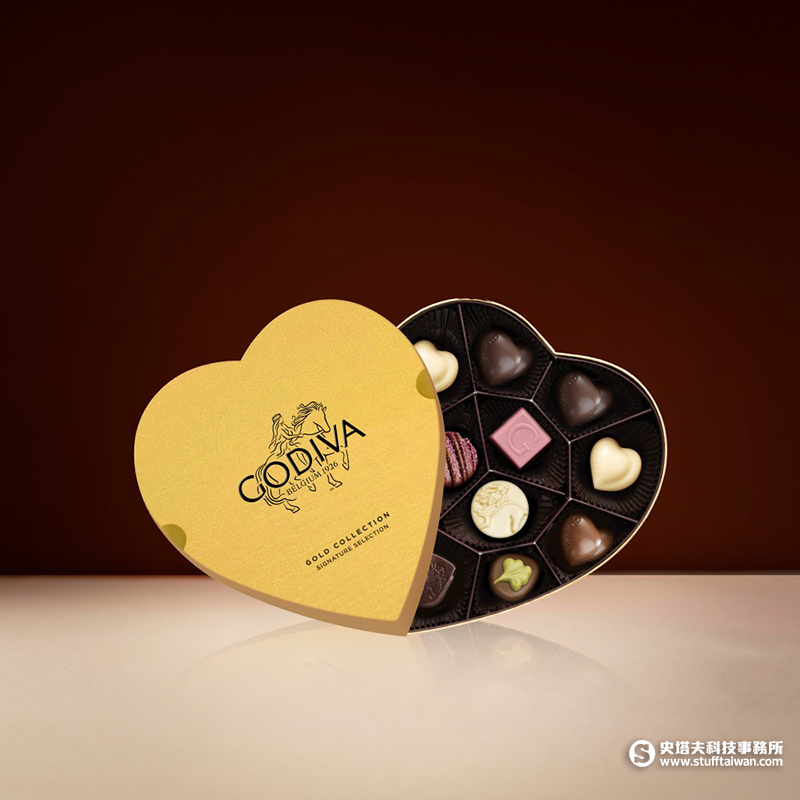 - GODIVA 歌帝梵金裝心形巧克力禮盒12顆裝,即日起至2/14優惠價1,590元,即日起至2/28登記抽煌隆壹台錢黃金條塊。