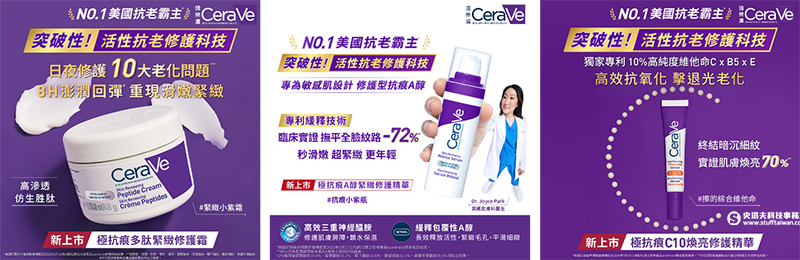 若想追求更高階的透明感,「CeraVe極抗痕C10煥亮修護精華」更是必備單品,宛如肌膚的專屬維他命,穩定的同時提亮膚色。最後,「CeraVe極抗痕多肽緊緻修護霜」更是堪稱百搭之霜,質地滋潤但不厚重,有效修護抗老,能完美鎖住前序精華的能量,讓肌膚在最舒適、最穩定的狀態下,展現出高級的質感。