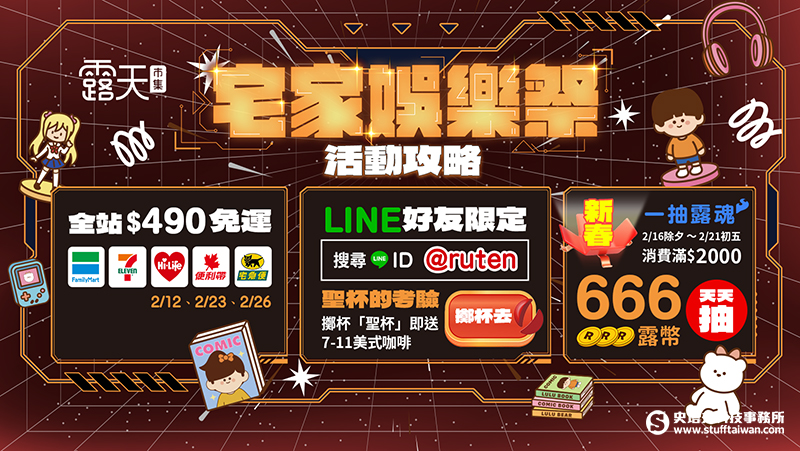根據露天市集觀察,在農曆春節前兩週,受惠於動漫節買氣,動漫IP週邊商品加上一抽露魂GMV相較去年同期暴增一倍,顯示春節採買與過年娛樂需求於2月加速升溫。