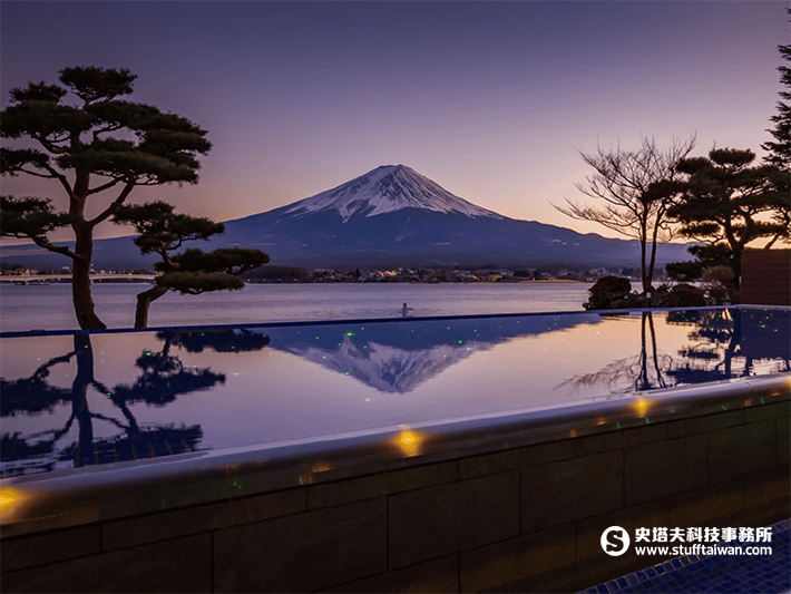秀峰閣湖月擁有富士山觀景足浴露台,可盡情欣賞壯麗美景