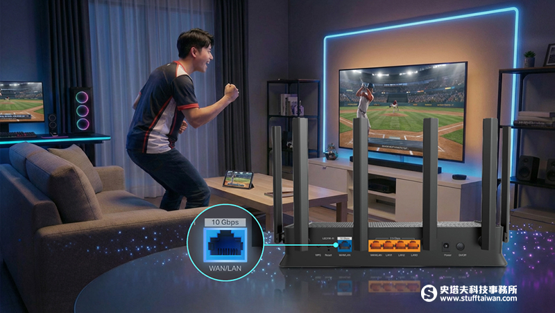- 10GbE 與5GbE 高速有線埠:可搭配智慧電視、遊戲主機或 NAS 設備,提升影音傳輸效率與穩定性