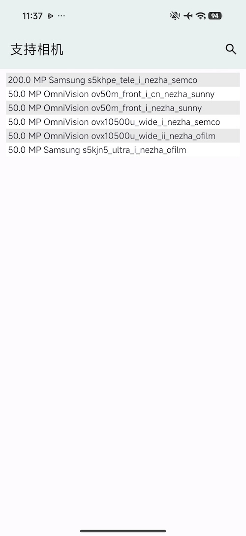 利用Device Info HW查詢相機感光元件,主相機光影獵人其實就是威豪的OVX10500U,長焦是Samsung HPE、超廣角是Samsung JN5、前鏡頭是OV50M。