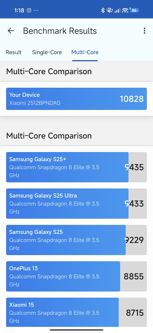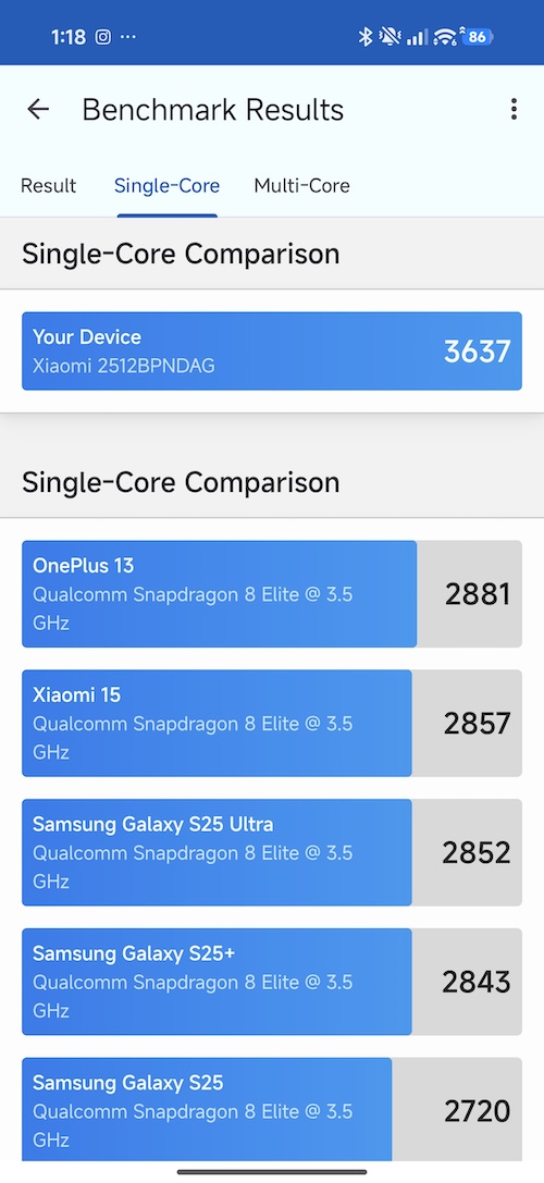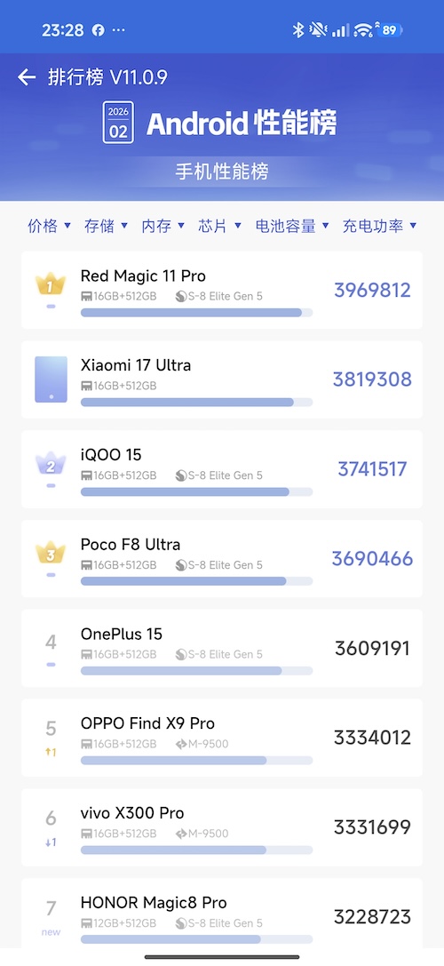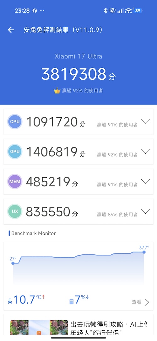 Xiaomi 17 Ultra實測安兔兔V11.0.9得到約381萬分,僅次於Red Magic 11 Pro。