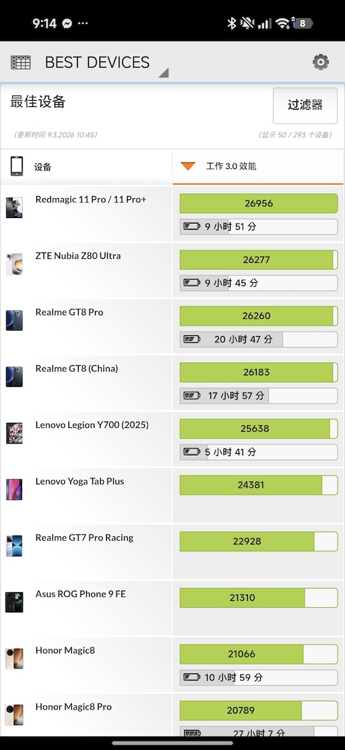 Xiaomi 17 Ultra跑日常使用為主的PCmark工作3.0,得到26,956分。