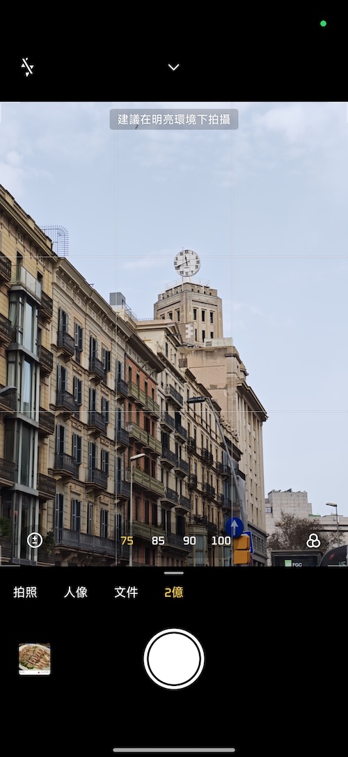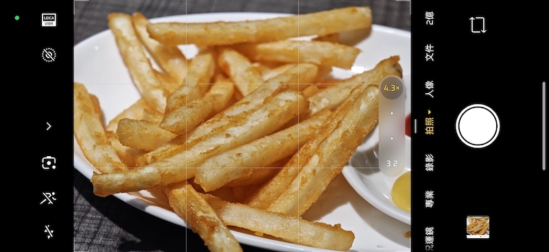 Xiaomi 17 Ultra在3.2x~4.3x之間的倍率,相機介面上可快速切換中間的85mm與90mm,而3.2x是75mm、4.3x是100mm。