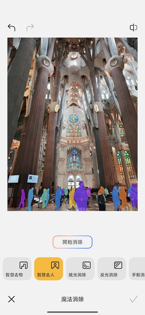 小米的AI去人完全可以自動,選擇智慧去人後,按下開始消除,在幾秒內就可以清除路人並生成填滿。