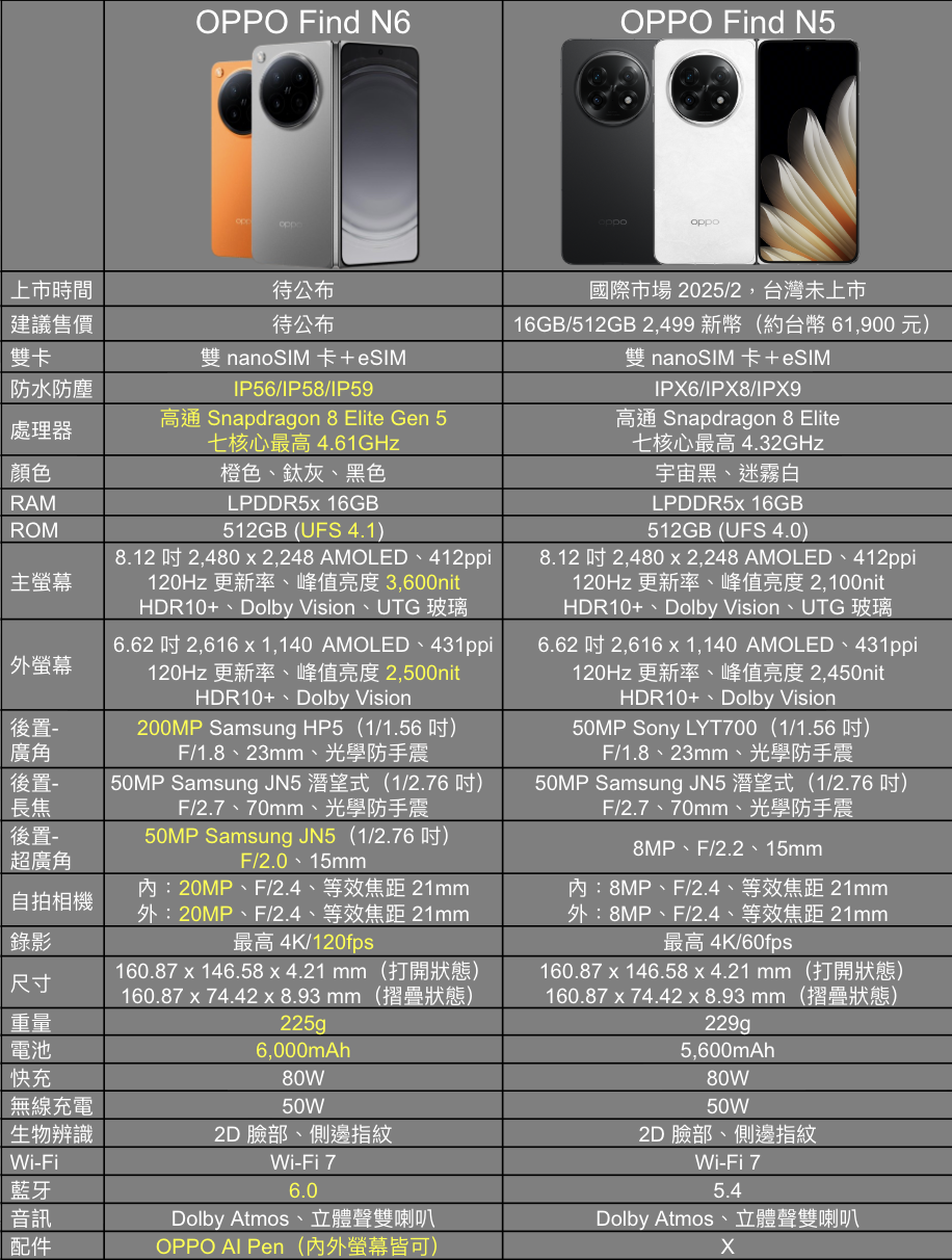 OPPO Find N6確認將於台灣市場推出,具體產品上市資訊、各功能支援性將依不同市場而定,正式發表日將於後續公布。