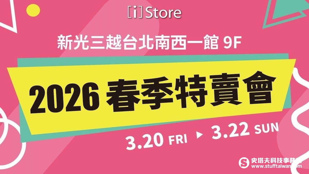 [i]Store 2026 春季特賣會即將於 3 月 20 日(五)至 3 月 22 日(日)盛大登場,為期三天的活動選在新光三越台北南西店一館 9 樓活動會館舉行。本次特賣會祭出本年度最感人的折扣,包含 Mac、iPhone、iPad 以及 Apple Watch 等四大福利機台,最低折扣從 3 折起跳。