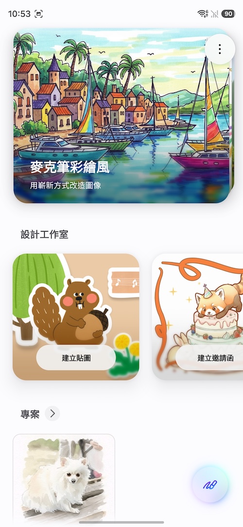在Galaxy S26 Ultra內建的「創意工作室」中,可以利用「建立貼圖」把嚕米的照片上傳製作成貼圖,可選擇鮮艷、公仔、多邊形、動畫、可愛風等多種樣式。
