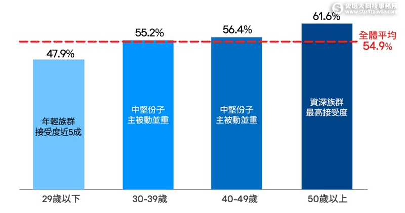 隨市場投資觀念演進,主動式ETF已成為台股投資人投資組合中的選項之一。調查數據顯示,全體投資人偏好將主動式ETF納入投資組合的平均比例達55%。特別是這股主動式熱潮並非只出現在資深投資者,29歲以下的年輕族群中亦有47.9%的比例偏好將主動式ETF納入配置。這反映出數位原生代對於主動式工具的認同,正成為各世代投資人強化資產成長動能的重要引擎。*見圖三