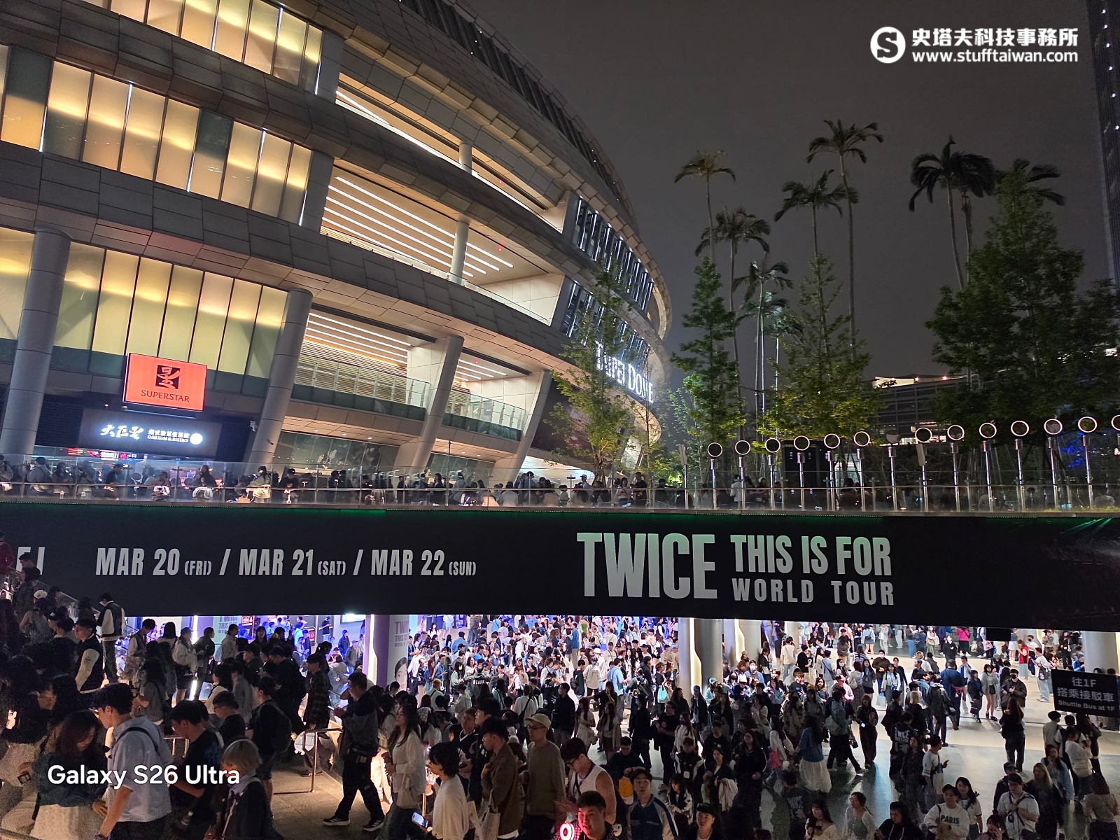 身為一名忠誠的ONCE(TWICE官方粉絲名),個人內心有兩件事絕對不能妥協:1.應援口號一定要喊得比隔壁大聲、2.絕對不能讓偶像在我的鏡頭裡糊成一團馬賽克!然而,在演唱會這種極端的「影像修羅場」中,距離、光線與晃動(震動)是拍攝3大痛點。搶票當天獻上一整年的運氣,即便最終降落於傳說中的「蛋頂」仍舊很感激(有票就準備流淚了……),不過在如此極端的物理距離下,肉眼看到可能僅是模糊的米粒人。但我卻一點都不慌,因為口袋裡握著厲害的演唱會神器:Galaxy S26 Ultra,此次恰巧能夠以高視角俯瞰拍攝,實際體驗看看是否可以靠著Galaxy S26 Ultra的影像黑科技,完美將蛋頂變成搖滾區!