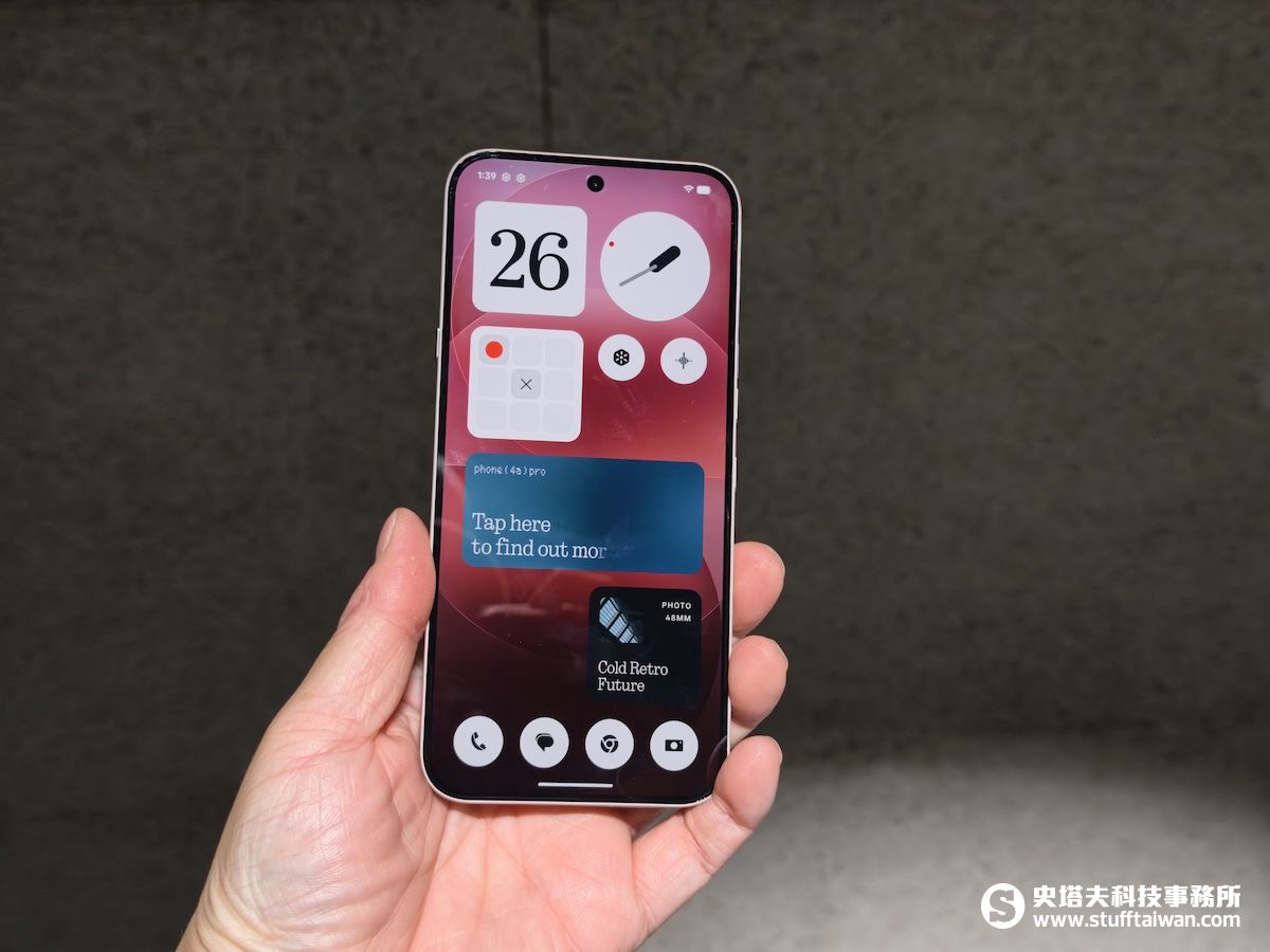 此外,全金屬一體成型機身厚度僅7.95mm,具備IP65防塵防水等級,並擁有5300mm²超大VC均溫板散熱系統。搭載由137顆mini-LED組成的Glyph Matrix,發光面積擴大57%,亮度翻倍提升至3,000 nits,讓使用者能透過自訂燈光模式掌握來電通知。