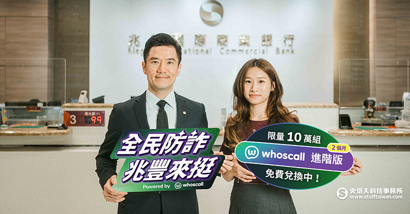 為保護顧客資產安全,兆豐銀行再次與受警政署認可的防詐 App Whoscall 合作,推出「全民防詐,兆豐來挺」系列性防詐行動,免費發送高達 10 萬組《Whoscall 進階版》2 個月的兌換代碼作為起始,樹立金融機構投入防詐公益的新標竿。