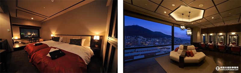 位於函館灣畔,鄰近金森紅磚倉庫、函館朝市與函館山纜車,春季可前往五稜郭公園欣賞北海道代表性櫻花景點!飯店整體融合大正時代浪漫古典風格,設有多樣溫泉設施與桑拿空間,其中頂樓露天溫泉可遠眺函館夜景,為世界知名三大夜景之一,女性專屬化妝間也坐擁壯麗景色。