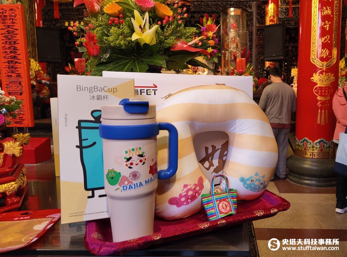 其中兩用頸枕採用一枕多用的靈活設計,無論是長途旅程的支撐還是辦公室小憩皆極為實用;保溫瓶則選用高等級 316 不鏽鋼材質,雙開口設計讓冷熱飲皆能便利享用,全方位照顧民眾在遶境旅途中的補水需求。