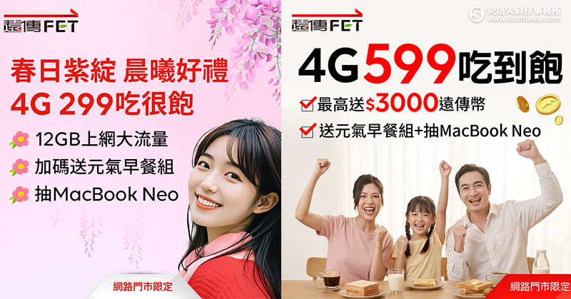 遠傳網路門市限定!申辦資費299元起送超商早餐,加碼抽MacBook Neo