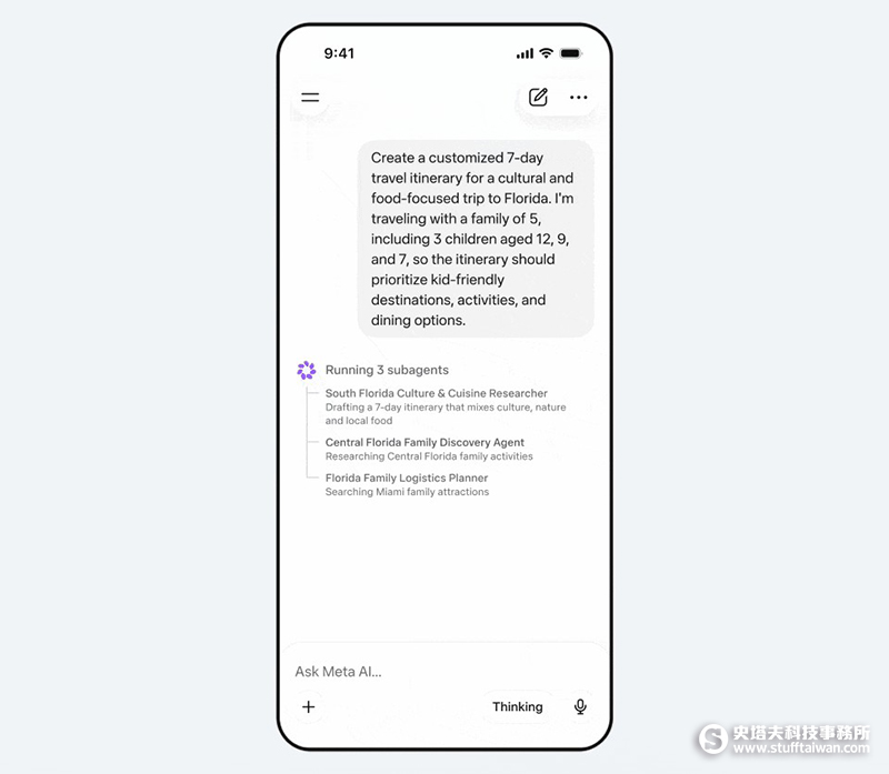 Muse Spark 現已應用於 Meta AI 的 App 及 Meta.AI 網頁版中的 Meta AI 助理,支援進階邏輯推理與多模態任務處理。