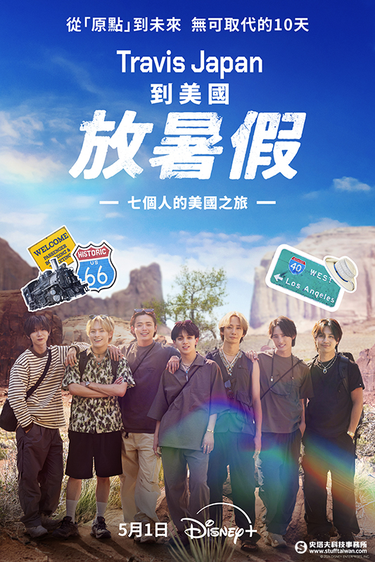 Disney+ 正式宣布,全新實境旅遊節目《Travis Japan 到美國放暑假》確定將於5月1日 上線!Travis Japan 七位成員——宮近海斗、中村海人、七五三掛龍也、川島如惠留、吉澤閑也、松田元太與松倉海斗——將踏上一趟橫越美國的冒險之旅,用鏡頭記錄屬於他們的重要時刻。