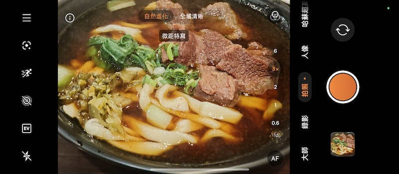 Find N6透過長焦微距,在近距離拍攝花蕊或飾品細節時,對焦速度相當精準,焦點外的自然散景過渡柔和,細節還原度極高,可選擇自然虛化或全域清晰。在拍攝食物或水果時,能捕捉到細微的材質紋路與表面質地。然而,近拍模式下若光線不足,就會有明顯的畫質衰減。雖然長焦微距最高可以開到30x,但實際測試開到6x以下的畫質最好。