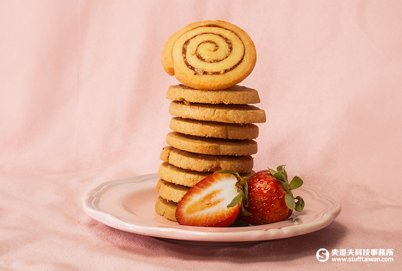 「茉莉茶香奶霜夾心」嚴選台灣坪林茉莉花茶粉,將淡雅花香揉入餅乾與奶霜內餡之中,入口輕盈清新、回甘悠長;「草莓核桃捲心」以天然草莓果醬結合香脆核桃,酸甜交織、口感層次豐富,象徵戀人之間甜蜜而飽滿的情感;