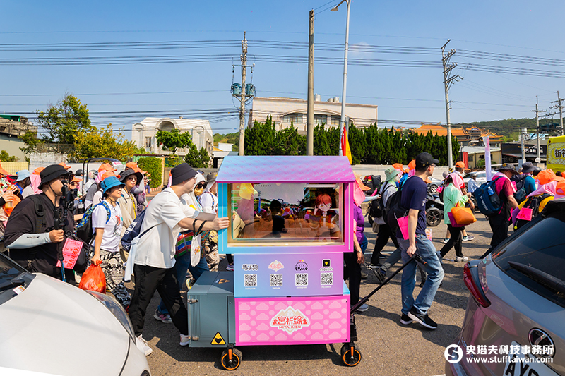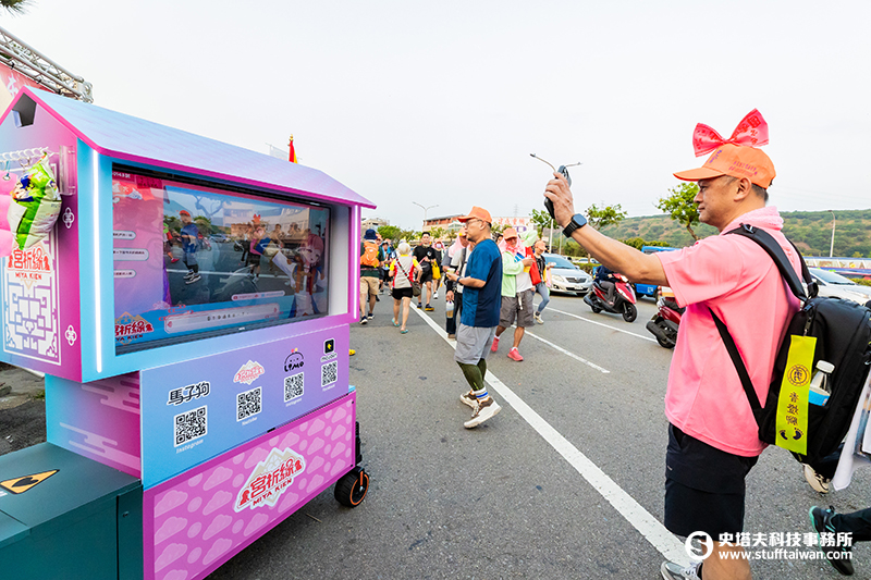 隨香過程中,穿梭於人群的小緣號吸引不少香燈腳駐足互動,紛紛好奇螢幕中的角色身分,並熱情向直播中的小緣打招呼。活動期間,小緣準備多款限定結緣品,包括御守籤詩、驚喜壓克力互動轉盤、創意符令,以及與台灣知名插畫家「馬子狗」聯名推出的脫單御守,邀請香燈腳參與互動。