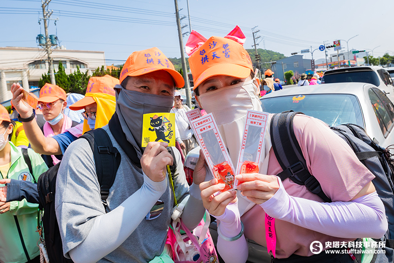 小緣準備多款限定結緣品與香燈腳熱情互動 創造徒步進香中的療癒時刻