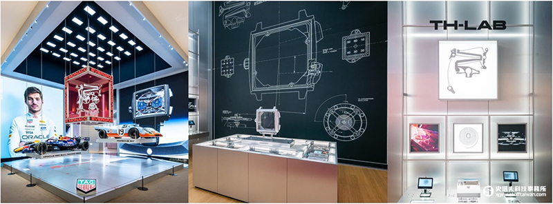 - TAG Heuer LAB 沉浸體驗:以互動式裝置拆解新世代計時機芯結構、材質、設計與測試流程,深入揭示柔性雙穩態計時機制與碳游絲等關鍵創新技術與製錶實力。