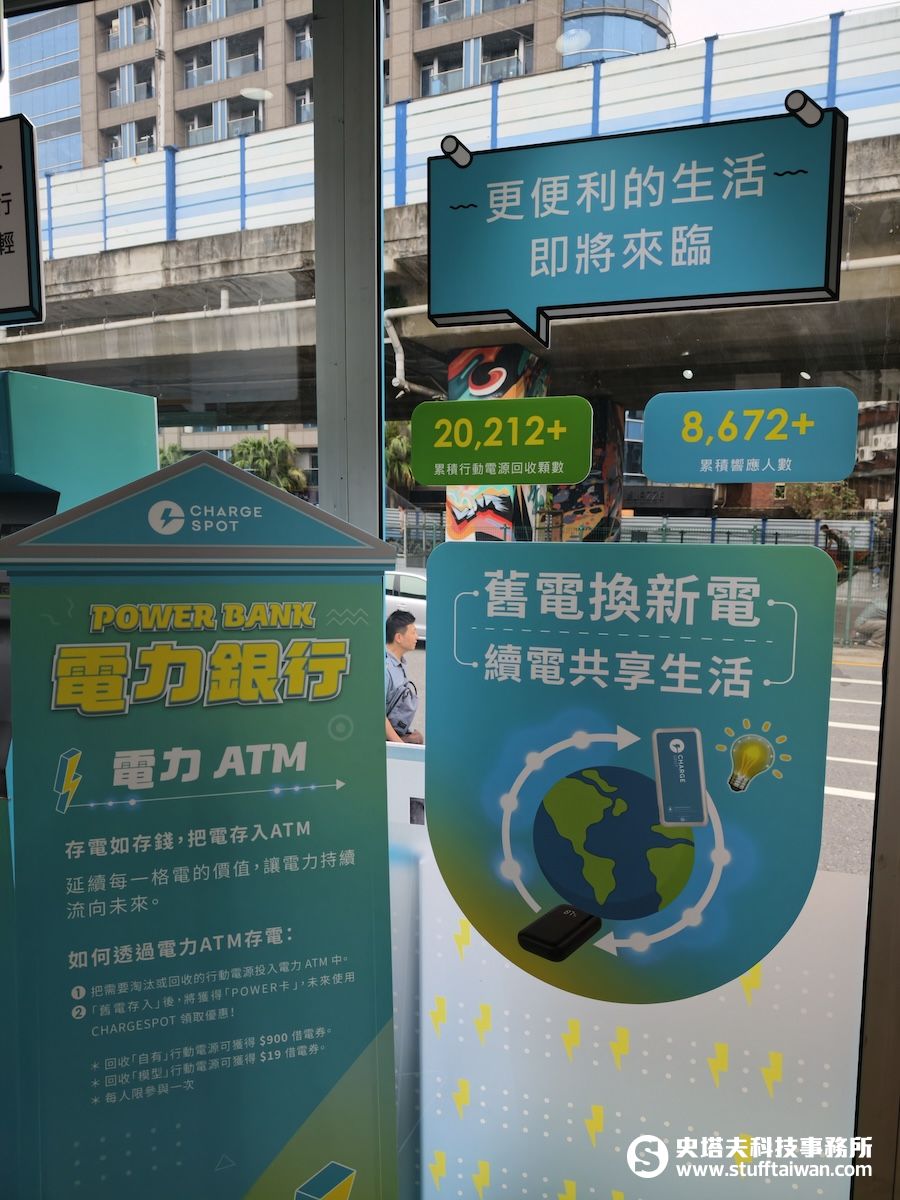 ⬇️舊款行動電源可以拿去現場回收,存電完成後獲得「借電券」,在CHARGESPOT輸入序號使用。