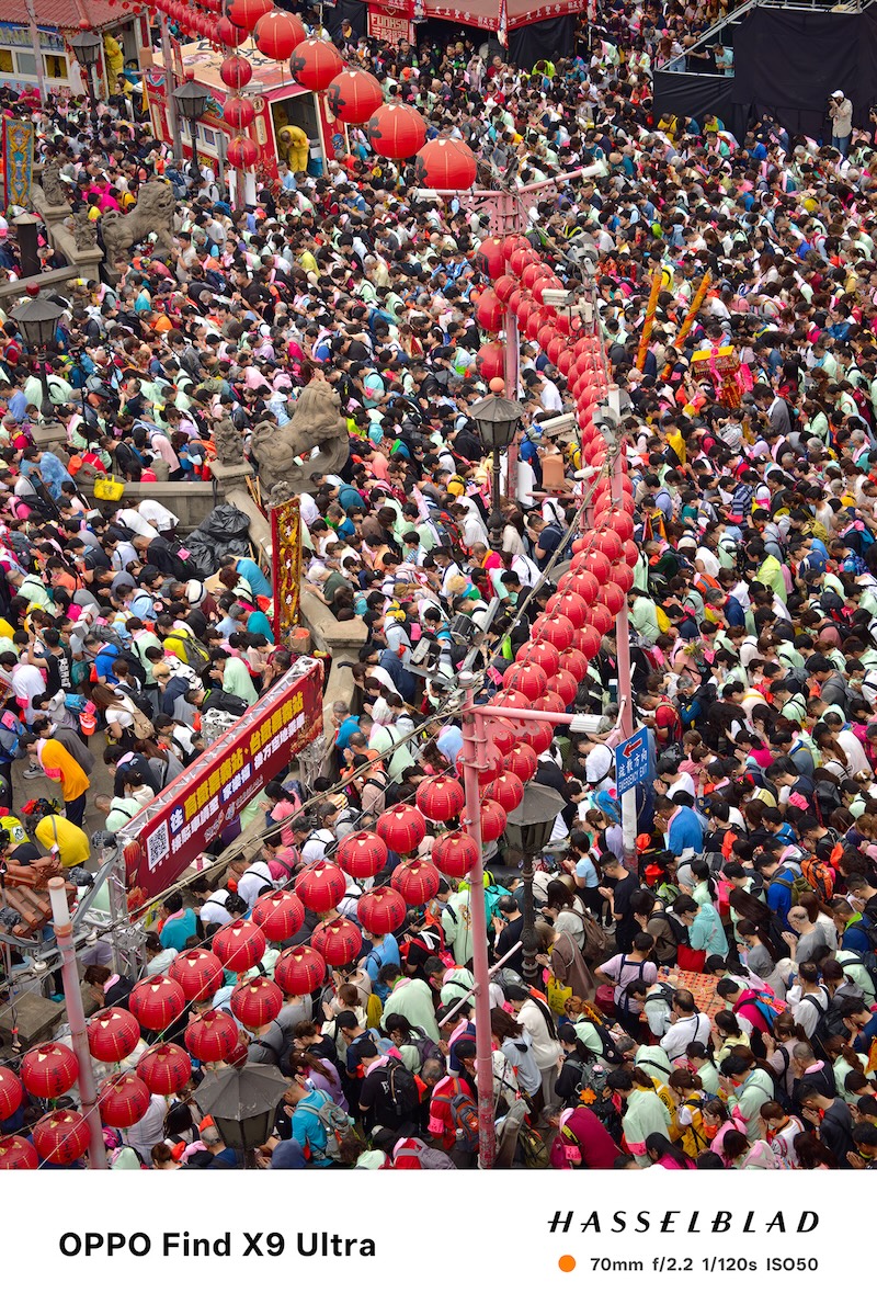 透過哈蘇大師鏡頭標誌性的影調風格,照片呈現出極具質感的色彩張力,不僅如實還原了遶境現場的感性氛圍,更將這份百年傳統信仰轉化為永恆且動人的精彩瞬間,提前預告了新一代影像旗艦的霸主實力。