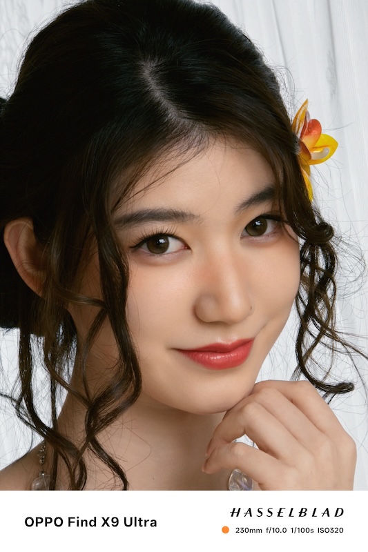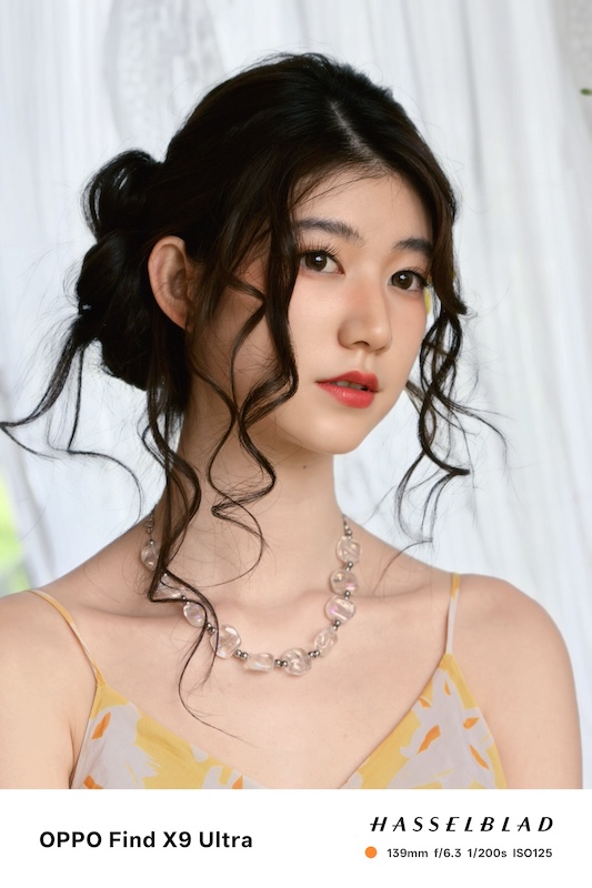 在發表會現場實際使用Find X9 Ultra拍攝人像,在人像模式中支援1x、2x、3x、6x、10x等倍率,其中原生的鏡頭是1x、3x、10x,2x使用1x裁切,6x使用3x裁切。使用內建的800T霓虹濾鏡拍攝,即使開到10x時畫質依然清晰,能看清楚臉上的細紋,不會完全抹掉。
