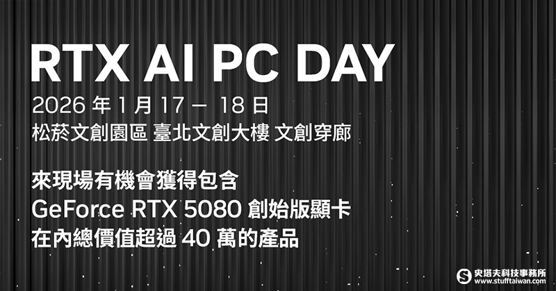 ACER RTX 50, AI PC 體驗, AI大師主題講座, ASUS RTX 50, GeForce RTX 50系列, GIGABYTE RTX 50, GPU AI TOPS, MSI RTX 50, NVIDIA RTX AI PC DAY, NVIDIA 顯示卡, NVIDIA抽獎, RTX 5080, RTX AI PC, ZOTAC RTX 50, 台北電腦活動, 咪咪蛋, 松菸文創園區, 林穎樂, 生成式AI創作, 蘋蘋澎澎