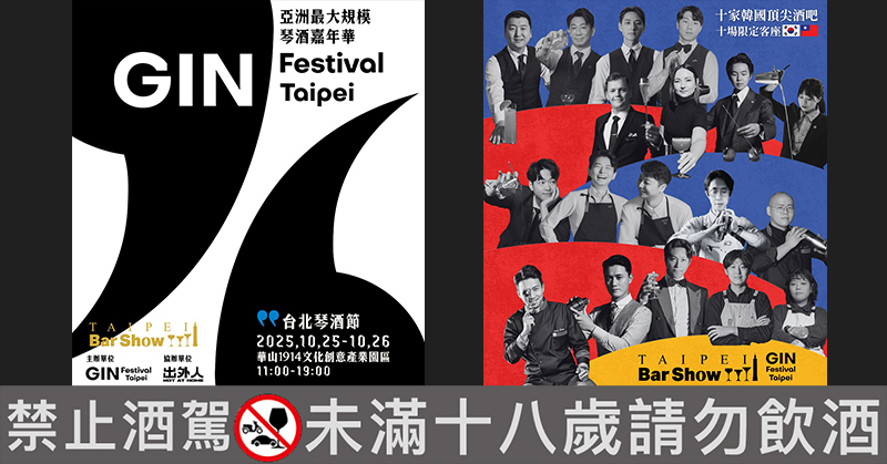 2025年活動, Gin Festival Taipei, 亞洲調酒盛事, 台北 Bar Show, 國際調酒賽事, 琴酒, 琴酒品牌, 琴酒嘉年華, 琴酒盛典, 生活美學, 秋日派對, 美食市集, 華山文創園區, 調酒, 調酒師, 調酒愛好者, 調酒文化, 調酒盛事, 調酒賽事, 跨國酒吧, 酒吧文化, 酒與食, 雙日票, 韓國調酒師, 韓式調酒, 頂級酒吧快閃, 風味變化