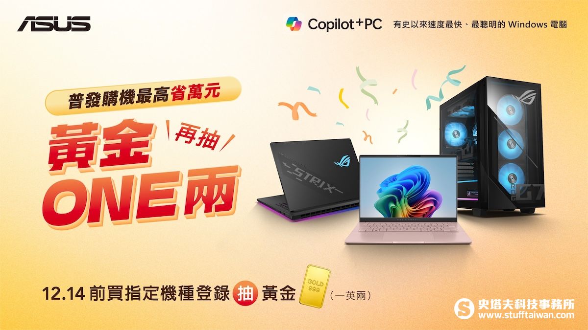 AI 運算力, AMD Ryzen AI, ASUS ProArt P16, ASUS Store 購物金, Copilot+ PC, OLED 螢幕, ROG Xbox Ally, ROG Zephyrus G16, ROG 促銷, RTX 5090, Snapdragon X, Zenbook A14, 年終購機, 普發金, 氮化鎵充電器, 滿萬送千, 登錄送電子禮券, 舊換新, 華碩優惠, 買筆電抽黃金, 電競桌機, 黃金一英兩
